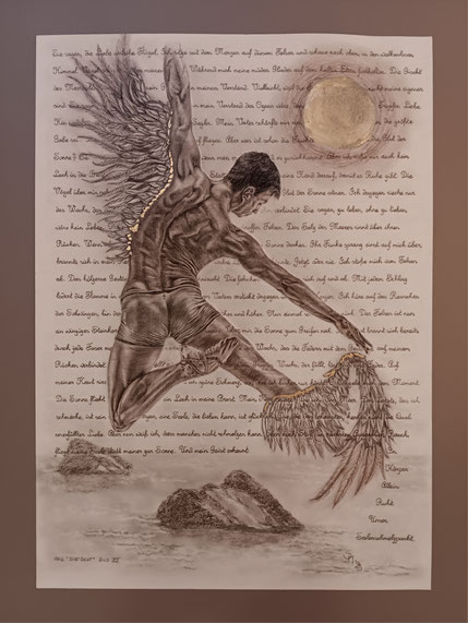 Graphit-/Rötelzeichnung mit Goldfolie